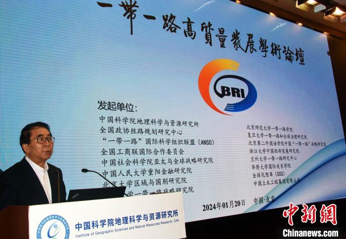 1月20日,“一带一路”高质量发展学术论坛第三届年会在北京举行,白春礼院士致辞并发表主旨演讲。中新网记者孙自法摄
